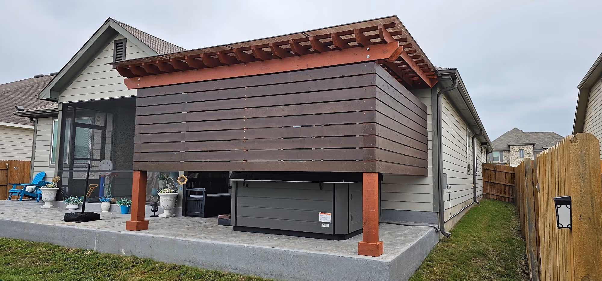 Completion times are unique to each project and are dependent on things like build complexity, project specific constraints, build location, and weather interruptions. However, most pergola and patio builds are completed within a few days from the time we start. Other projects like fiberglass pools and outdoor living projects can take several weeks.
